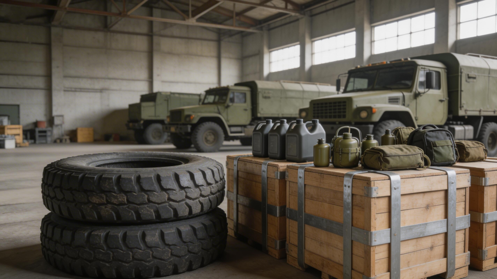 En Expotec, Inc. suministramos partes, consumibles y equipos diseñados para aplicaciones militares y de defensa. Nuestro portafolio incluye repuestos para vehículos tácticos como Humvee, camiones 2.5 Ton y 5 Ton, lubricantes militares, neumáticos especializados, equipos de supervivencia y primeros auxilios, dispositivos luminosos tácticos y soluciones para operaciones de búsqueda y rescate.